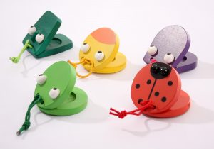 Vendidas em Kits as castanholas acompanham um estojo para facilitar o transporte. Cada kit possui 5 animais diferentes como Sapo, Hipopótamo, Jacaré, Pato, Joaninha, ou Galo, Onça, Leão, Vaca e Cachorro . Indicado para crianças de todas as idades, estes instrumentos estimulam a criatividade, além de permitir aos pais e educadores a reprodução do som dos animais, contos sonoros e também exercícios de pulsação e ritmo.