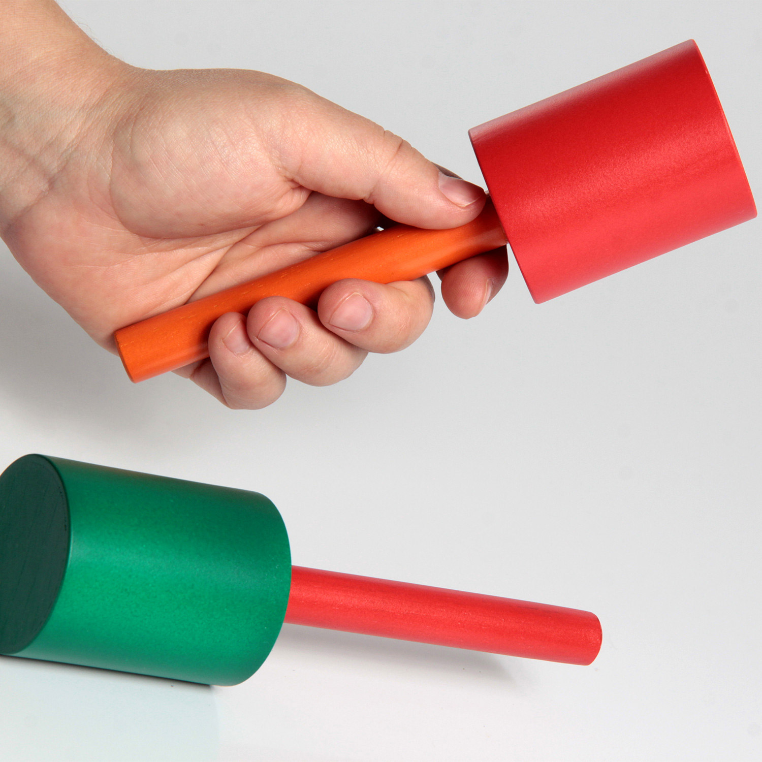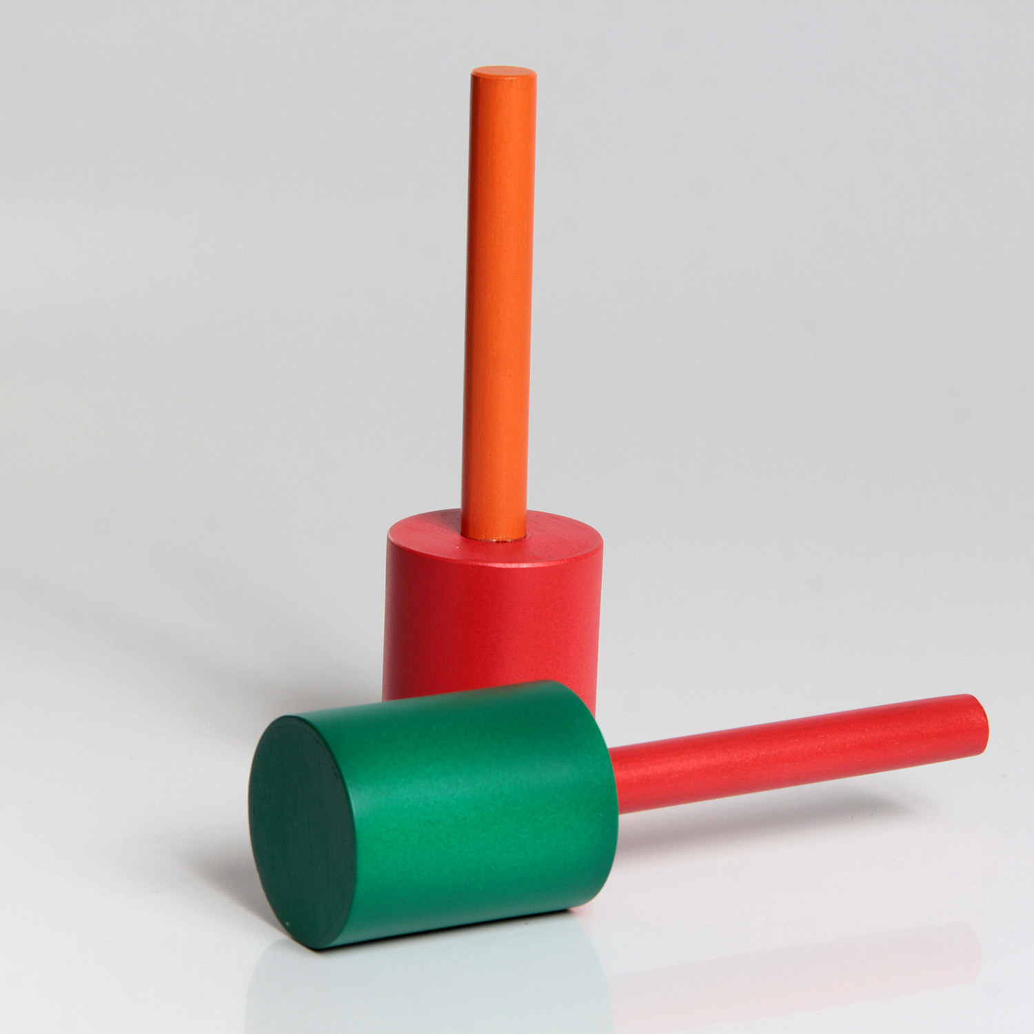 Instrumento de percussão que consta de um segurador de madeira unido a um chocalho feito de PVC e madeira. Seu som é produzido sacudindo-se o instrumento. Disponível nas cores: amarelo, laranja, roxo, vermelho e verde).
